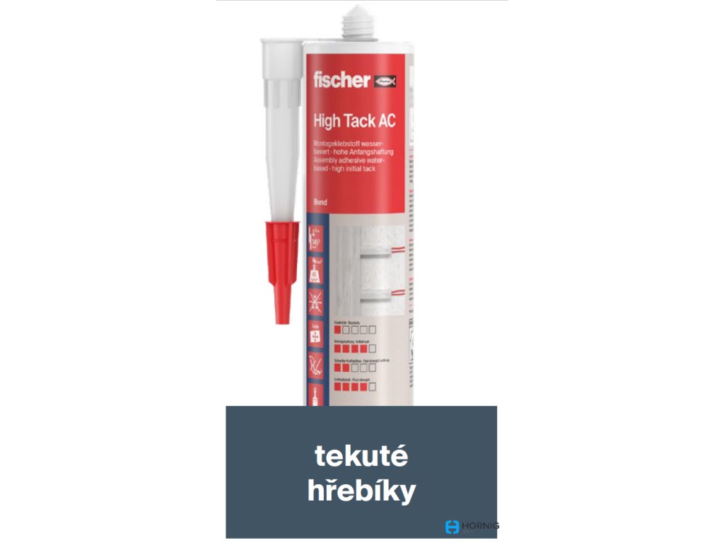 Fischer montážní lepidlo High Tack AC je ideální pro pevné a trvalé lepení různých stavebních materiálů včetně přírodního kamene či expandovaného polystyrenu.